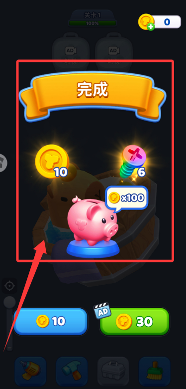 3、順利通關(guān)后,系統(tǒng)會(huì)獎(jiǎng)勵(lì)特殊造型的收藏級(jí)螺絲和游戲金幣,用于解鎖新工具。
