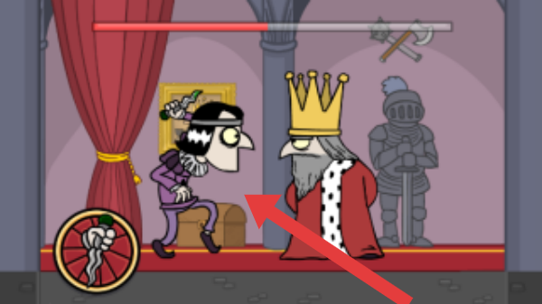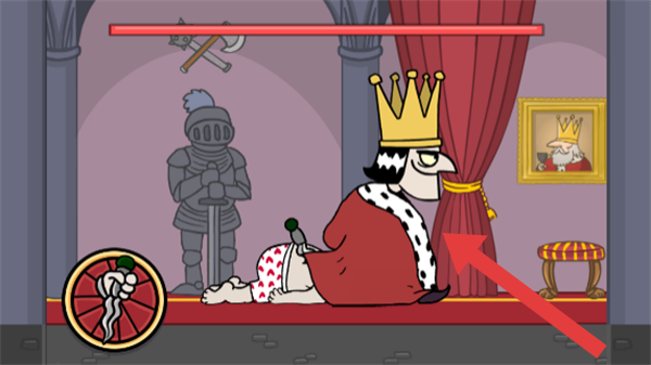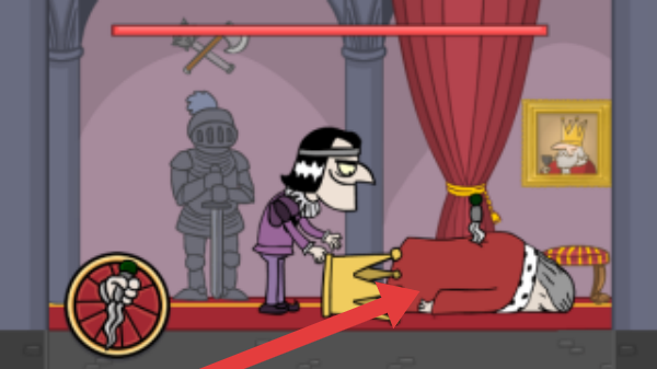 1、角色(持武器的臣民、戴皇冠的國王)、場景(宮殿內(nèi),有窗簾、鎧甲、武器等元素),屬于經(jīng)典的“刺殺國王”前的互動場景,玩家操控臣民角色嘗試通過策略行動取代國王。