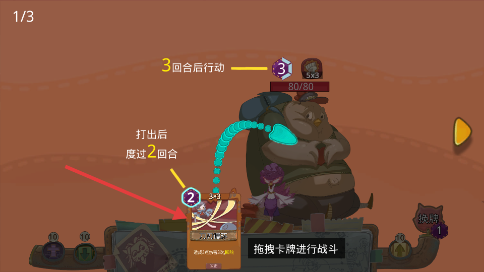 2、盯著敵人弱點回合數(shù)掐表,在數(shù)字歸零時甩牌能打出雙倍快樂。