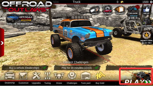 1、進(jìn)入游戲后點(diǎn)擊右下角play即可開(kāi)始越野。