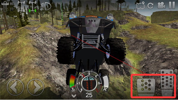 3、右下角右邊的按鍵是油門(mén),左邊的則是剎車(chē)。