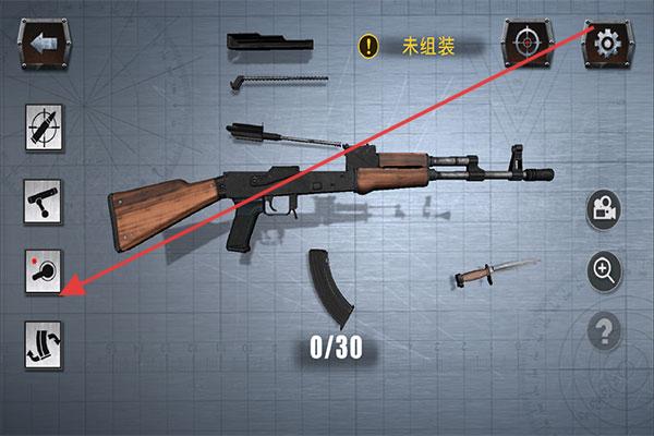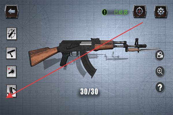 3、組裝完成后,查看界面“已組裝”狀態(tài)及彈藥數(shù)(30/30),確認組裝成功,可嘗試拆解(反向操作部件圖標(biāo))。