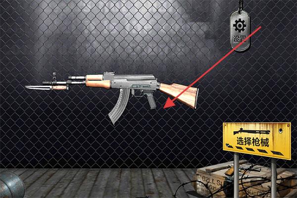 2、在“選擇槍械”場景,點擊已組裝好的AK(箭頭指向),將其選定為可用武器,進入射擊/實戰(zhàn)模擬環(huán)節(jié)。