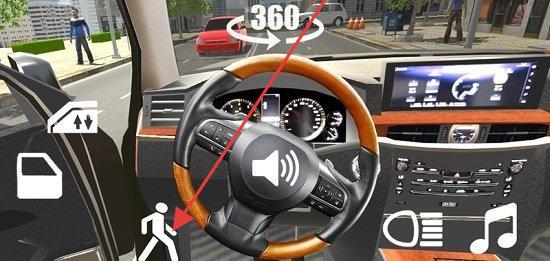 2、駕駛操作:利用虛擬方向盤、踏板控制車輛,在開(kāi)放道路行駛,通過(guò)360°視角按鈕切換觀察角度,躲避行人。