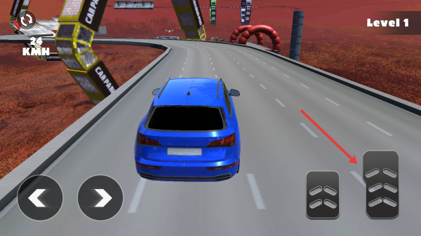 1、選藍(lán)色SUV(點“SELECT”),進(jìn)“Level1”賽道,用虛擬按鍵控方向、加速,備特技。