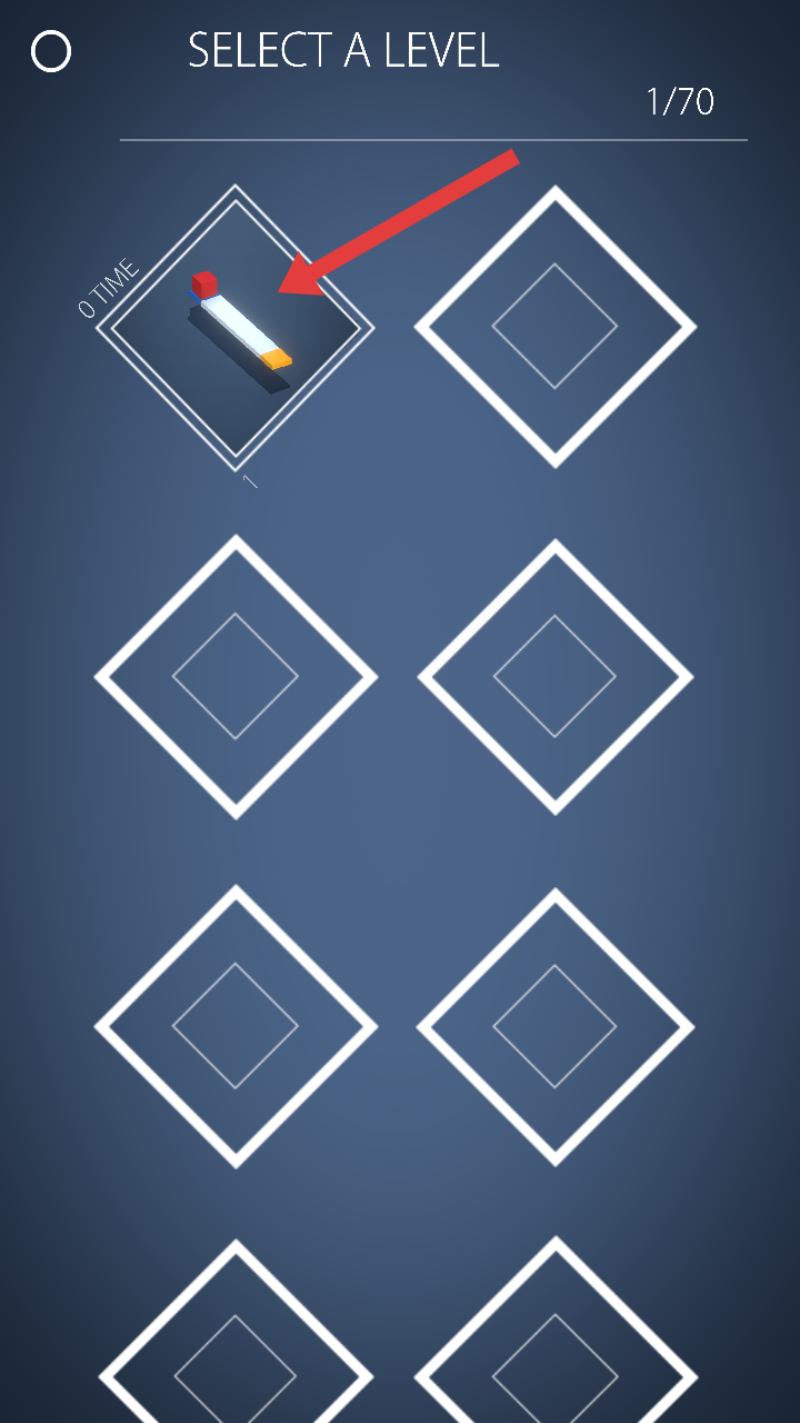 2、在立方迷宮的關(guān)卡選擇界面,點(diǎn)擊左上角標(biāo)有“1”的菱形關(guān)卡圖標(biāo),進(jìn)入Level1開始挑戰(zhàn)。