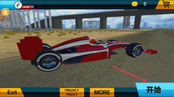 1、在Level10界面,點(diǎn)擊【開始】,駕駛方程式賽車進(jìn)入賽道。