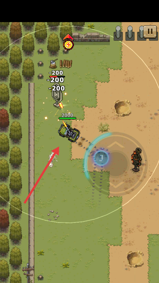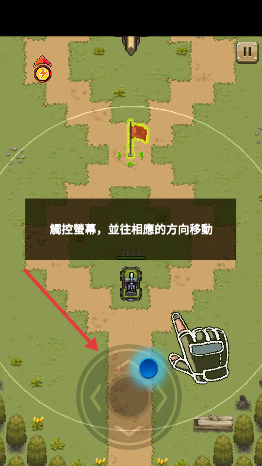 1、手指拖動屏幕控制吉普車走位,注意別把戰(zhàn)車開進敵方坦克的炮管里。