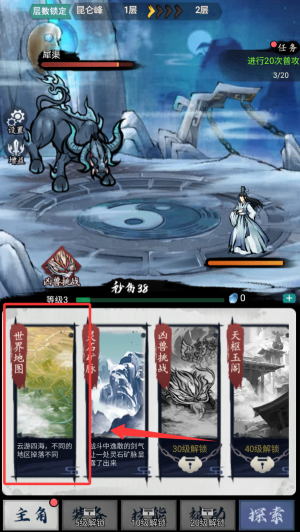2、通過地圖功能瀏覽整個修真世界的區(qū)域分布,查看當前所在位置與重要地點坐標。