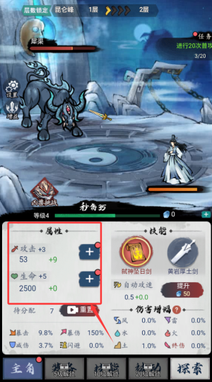 3、在角色界面調(diào)整各項修為數(shù)值,自定義修煉方向與功法搭配方案。