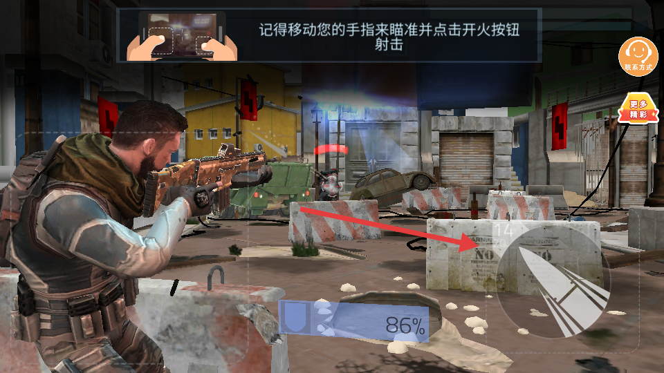 1、左手劃屏控制走位,右手點(diǎn)擊射擊,記得找掩體否則會(huì)變成篩子。