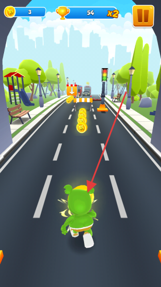 1、踏入樂(lè)園,操控圓滾滾的橡皮糖小熊,靈巧避開(kāi)第一排旋轉(zhuǎn)的棒棒糖路障,開(kāi)啟跑酷之旅。