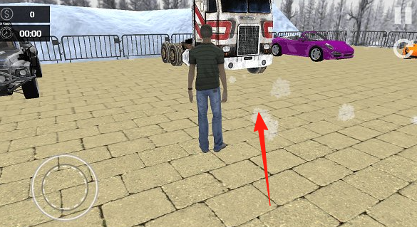 1、車輛選擇場景,操控人物,沿【箭頭】方向,走近想駕駛的車輛。