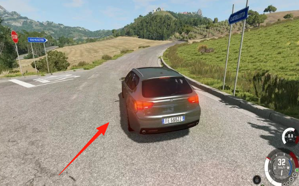3、公路駕駛中,操控灰色汽車,依照【箭頭】方向,遵守交規(guī),安全行駛。