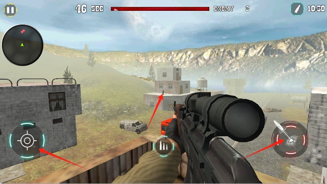 2、狙擊操作與技巧:通過虛擬搖桿移動與縮放瞄準鏡,調(diào)整呼吸以減少晃動,根據(jù)環(huán)境參數(shù)計算彈道,在最佳時機開槍,確保一擊命中目標(biāo)。