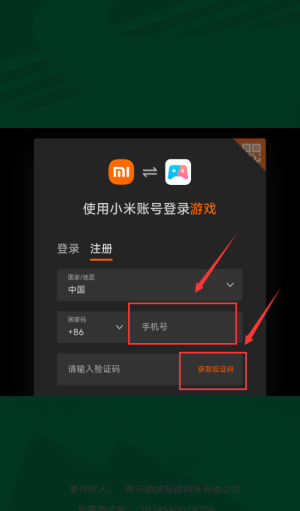2、輸入手機(jī)號(hào)碼,點(diǎn)擊獲取驗(yàn)證碼按鈕。