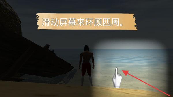 1、滑動(dòng)屏幕任意區(qū)域,調(diào)整視角,觀察周邊環(huán)境(如海洋、沙灘),尋找資源點(diǎn)。
