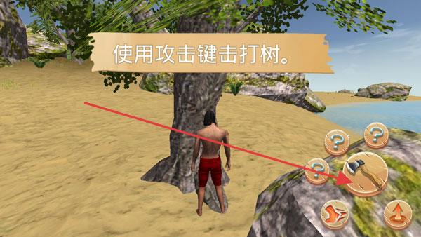 3、面對(duì)樹(shù)木,點(diǎn)擊右側(cè)攻擊鍵(斧頭圖標(biāo)),持續(xù)擊打獲取木材,用于制作工具。