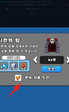2、第二張圖“???(試煉之塔)”,點(diǎn)擊愛(ài)心圖標(biāo)“??????(練習(xí)借用挑戰(zhàn))”,確認(rèn)挑戰(zhàn)設(shè)置(如消3000、3800等資源)。