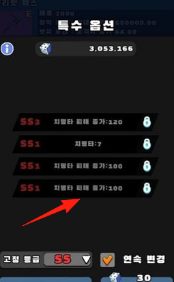 3、第三張圖“????(投手選項(xiàng))”,箭頭指向SS1級(jí)英雄裝備,可選擇其進(jìn)行試煉塔挑戰(zhàn),依據(jù)屬性搭配陣容。