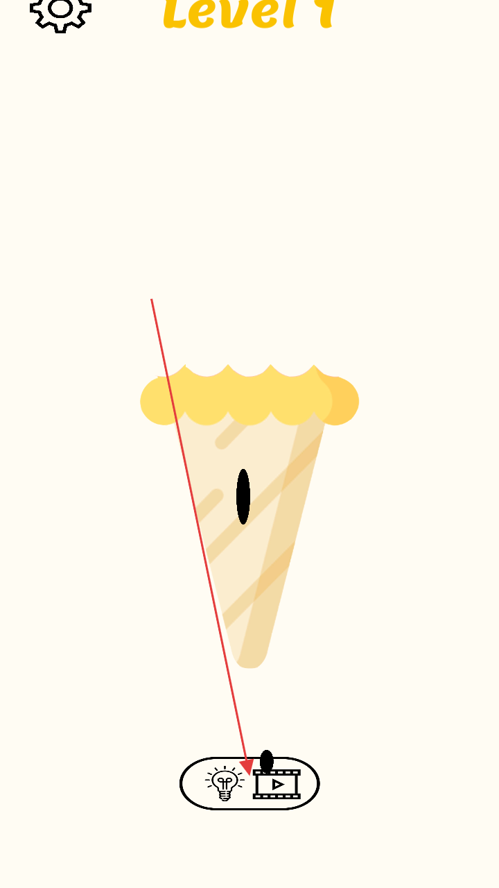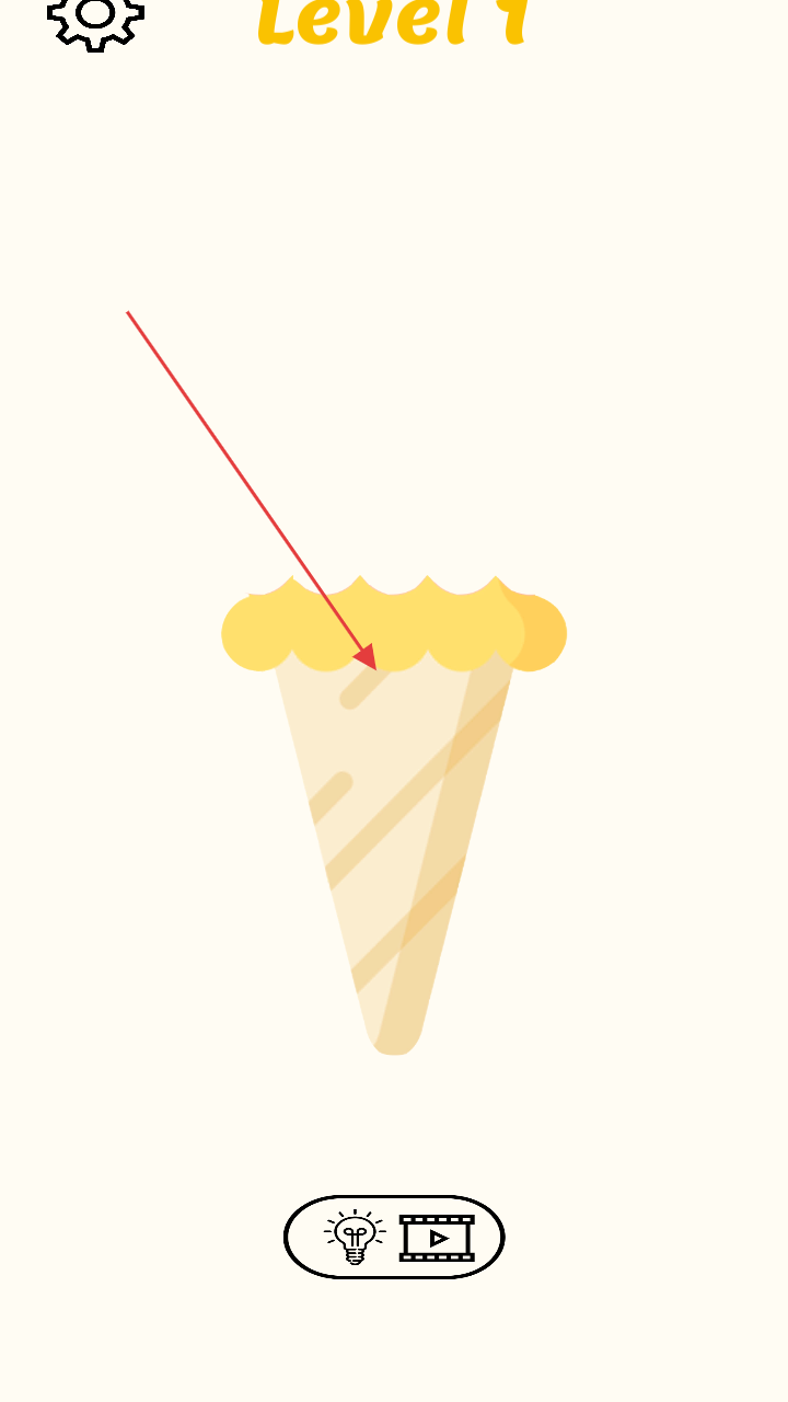 1、進(jìn)入游戲,選定Level1關(guān)卡,界面呈現(xiàn)待救援的冰淇淋目標(biāo),仔細(xì)觀察其所處場景與潛在危險,做好繪制救援線條的準(zhǔn)備 。