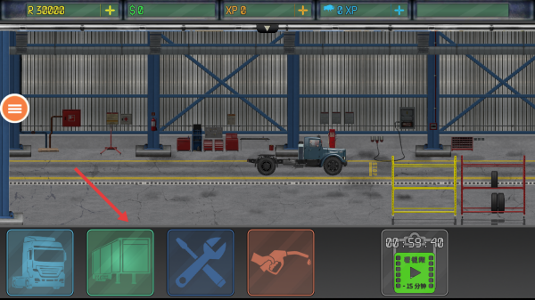 1、在車庫點擊綠色貨柜圖標,給卡車裝配貨柜,檢查車輛狀態(tài),準備執(zhí)行運輸任務。