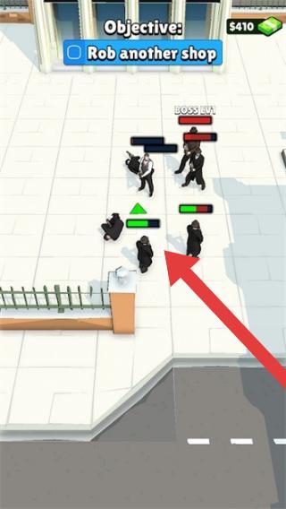 1、畫面中顯示任務(wù)目標(biāo)“Objective:Robanothershop”(目標(biāo):搶劫另一家商店),有多個(gè)角色形象,其中標(biāo)注“BOSSLV4”,表示4級(jí)首領(lǐng)。