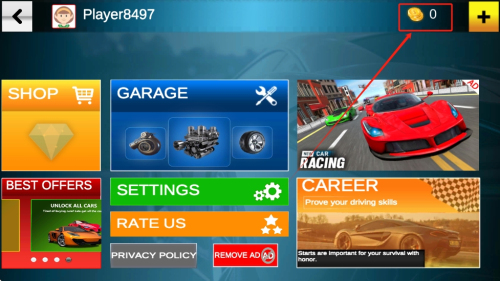 2、主界面顯示當(dāng)前持有金幣數(shù)量,便于規(guī)劃后續(xù)車輛改裝或新賽道解鎖方案。