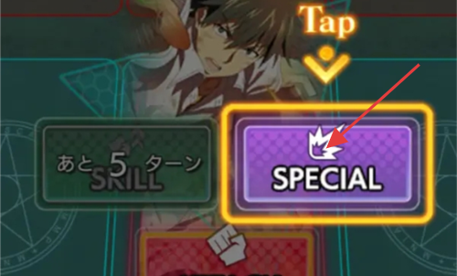 1、戰(zhàn)斗中,看到角色卡牌上【Tap SPECIAL】提示,及時(shí)點(diǎn)擊紫色“SPECIAL”按鈕,釋放特殊技能,打出高額傷害或關(guān)鍵效果。