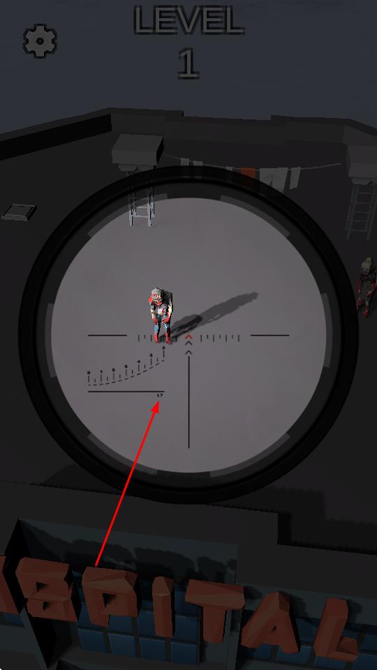 2、在狙擊場景中,滑動屏幕調(diào)整瞄準(zhǔn)鏡視角,鎖定僵尸頭部點擊射擊鍵,同時留意是否有正常人類出現(xiàn)。