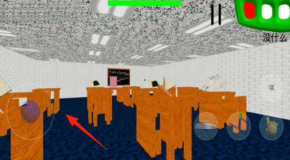 1、進入教室后,通過左側(cè)虛擬搖桿,按箭頭方向【移動探索】,留意周圍是否有道具可拾取,為后續(xù)冒險做準(zhǔn)備。