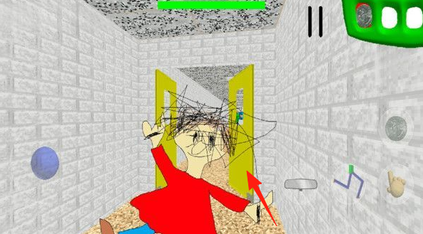 2、在走廊遇到紅色衣服角色時,迅速沿箭頭方向【向門口移動躲避】,避免與之發(fā)生接觸,減少被攻擊的風(fēng)險。