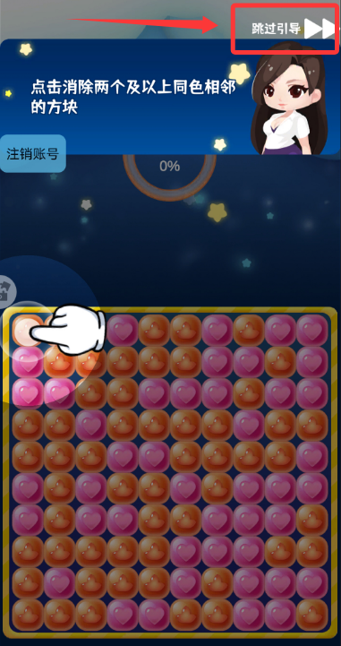 1、進(jìn)入游戲后,可以自由選擇跳過(guò)新手教學(xué),直接開(kāi)始體驗(yàn)趣味消除玩法。