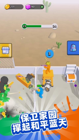 2、動(dòng)態(tài)防御機(jī)制獨(dú)具創(chuàng)意,戰(zhàn)場中分布多個(gè)出口,玩家需搜集場景中的障礙物或道具進(jìn)行實(shí)時(shí)封堵,防止敵人突破防線,考驗(yàn)臨場應(yīng)變與資源管理能力。