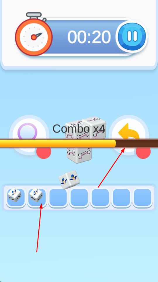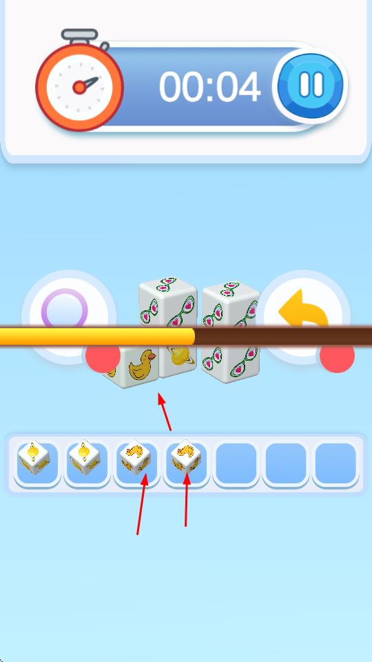 1、“骰子匹配”,觀察上方滾動(dòng)骰子圖案,點(diǎn)擊下方相同圖案骰子,進(jìn)行消除。