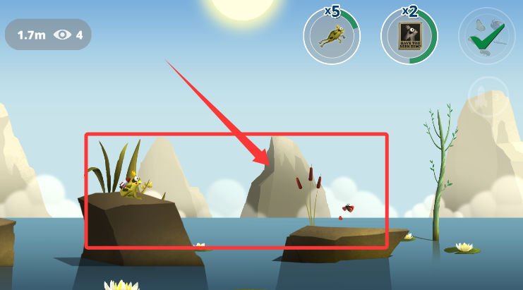2、快速點(diǎn)擊屏幕讓青蛙完成基礎(chǔ)彈跳,靈活躍過障礙或陷阱。