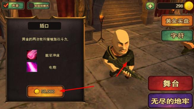 3、在地牢區(qū)域,操控角色完成神奇走位,瞄準(zhǔn)高大怪物射擊,利用金幣購(gòu)買的道具技能助力,朝著打敗怪物的目標(biāo)努力。