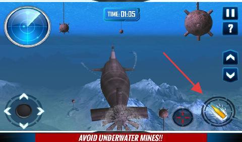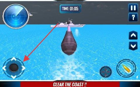 2、左側(cè)虛擬搖桿,操控潛艇移動(dòng)(規(guī)避水雷,接近目標(biāo))。