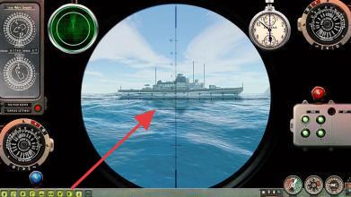 1、潛望鏡鎖定海上戰(zhàn)艦,標(biāo)記攻擊目標(biāo)。