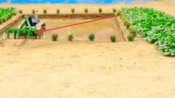 3、布置場(chǎng)景,將做好的農(nóng)機(jī)模型放入沙盤農(nóng)田,搭配作物、灌溉設(shè)施,還原農(nóng)業(yè)生產(chǎn)環(huán)境。