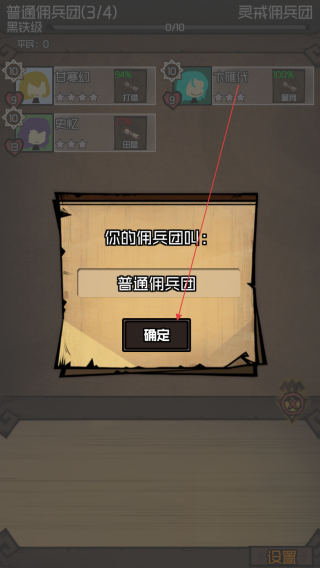 2、在彈出的命名界面,確認(rèn)【普通傭兵團(tuán)】名稱后點(diǎn)擊【確定】,完成傭兵團(tuán)初始設(shè)定,開(kāi)啟團(tuán)隊(duì)養(yǎng)成。