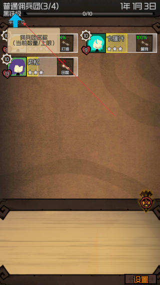 3、進(jìn)入傭兵團(tuán)界面,關(guān)注成員信息(如等級(jí)、技能),查看【黑鐵級(jí)】進(jìn)度,合理安排成員,推進(jìn)傭兵團(tuán)發(fā)展。