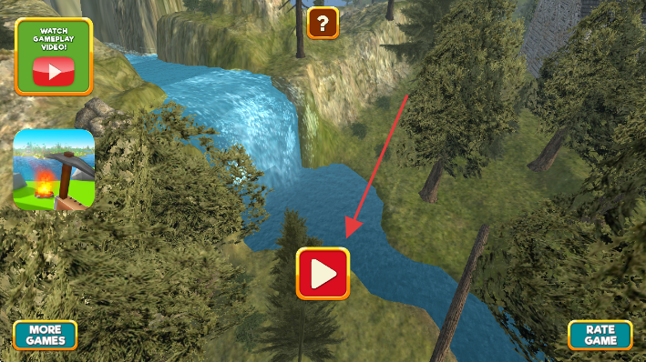 1、點(diǎn)擊主界面紅色播放按鈕,進(jìn)入森林生存場景(含瀑布、河流)。