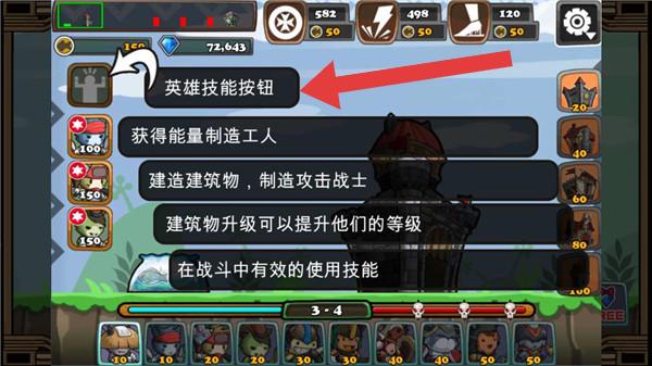 3、戰(zhàn)斗中,合理使用技能(如制造工人、升級建筑),按箭頭指引操作,抵御敵人,完成“3-4”波次挑戰(zhàn)。