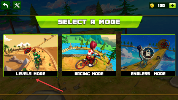 2、在模式選擇頁,點(diǎn)擊【LEVELS MODE】,選定關(guān)卡模式,進(jìn)入對應(yīng)騎行挑戰(zhàn)場景。