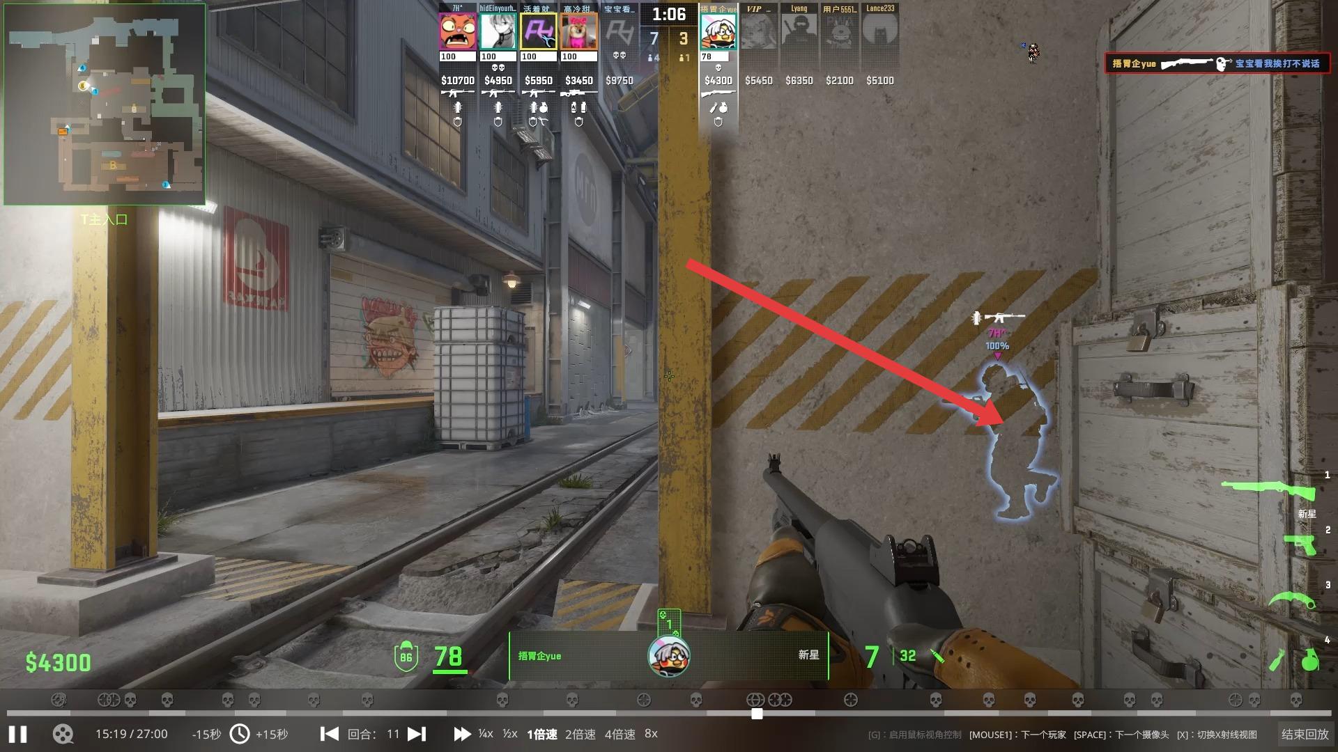 2、關(guān)注屏幕上方比分、隊(duì)友信息、金錢數(shù),按局勢和金錢買合適武器裝備,像當(dāng)前$4300選性價(jià)比高的槍。