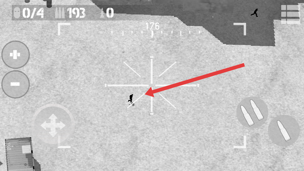 2、進入射擊場景后,操控準星瞄準畫面中的敵人,利用武器射擊,完成擊殺目標,注意觀察彈藥和血量狀態(tài)。