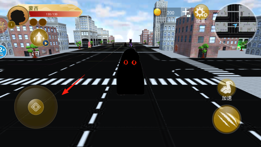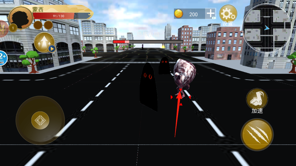 2、游戲中可操控角色“蒙西”,初始生命值130/130,擁有金幣200,界面設(shè)有“加速”等技能按鍵,助力戰(zhàn)斗操作。