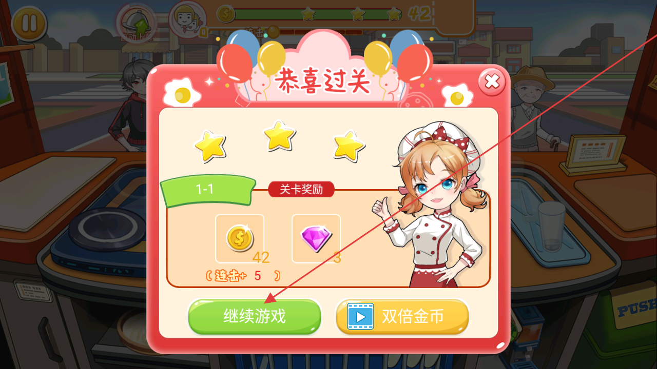3、成功完成關(guān)卡訂單后,可獲得金幣、鉆石等獎(jiǎng)勵(lì),點(diǎn)擊“繼續(xù)游戲”進(jìn)入下一關(guān),隨著關(guān)卡推進(jìn),訂單復(fù)雜度。