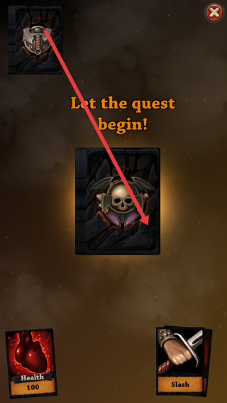 2、完成抽卡后,點擊卡牌堆,觸發(fā)Let the quest begin!的英文字樣,正式開啟冒險任務(wù),推進游戲進程。